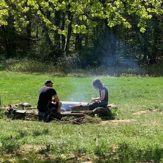 Vi starter det samme sted hver gang. Vi mødes ved bålet, hvorefter vi bevæger os ud i skoven i forskellige retninger.